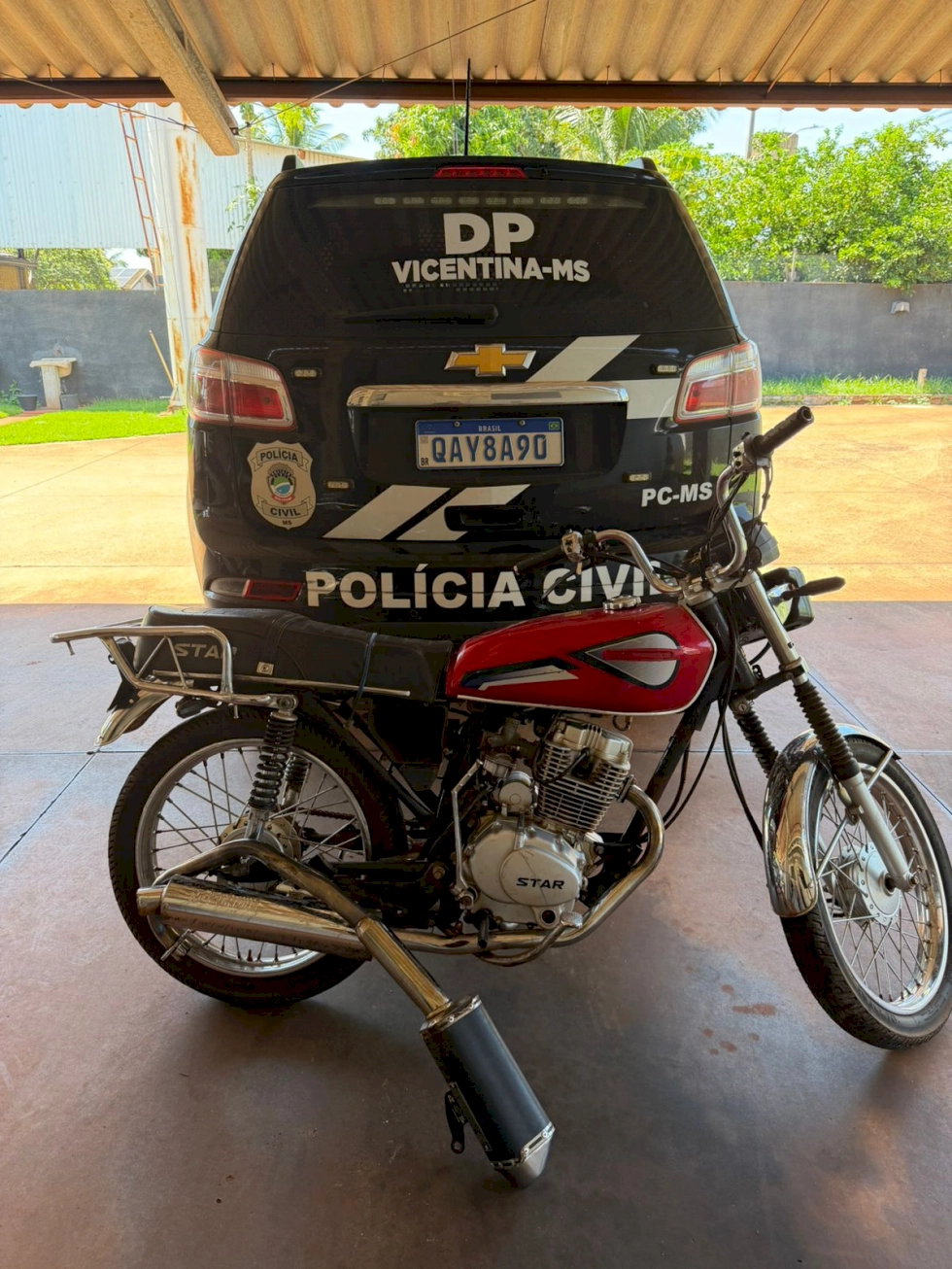 A Polícia Civil de Vicentina, no município de Vicentina, informa que realizou a prisão de um homem suspeito de furtar uma motocicleta pertencente ao Detran de Vicentina.