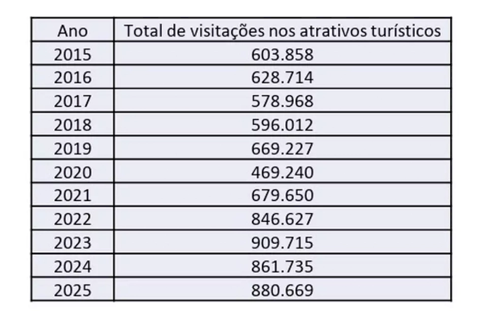 Foram registradas 880.669 visitações em atrativos, mantendo cidade entre os principais destinos de ecoturismo