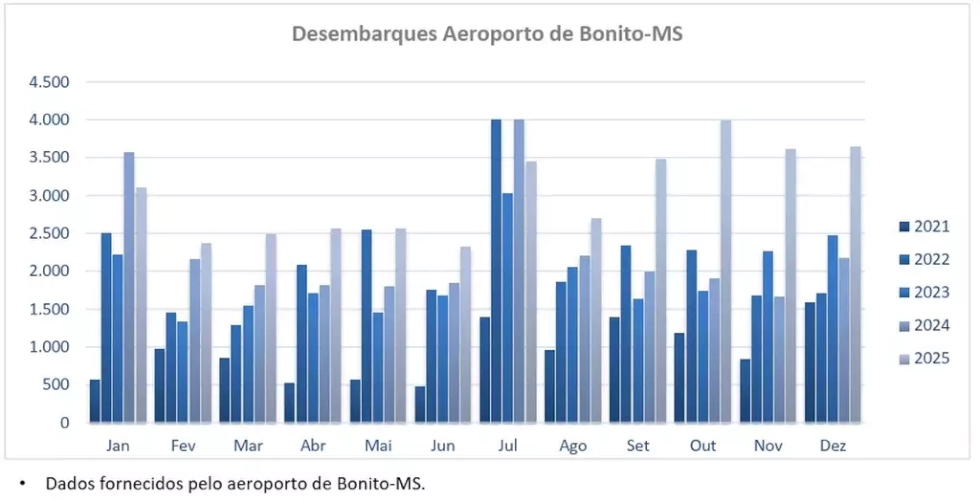 Bonito recebeu 293 mil turistas e bateu recorde nos desembarques aéreos em 2025
