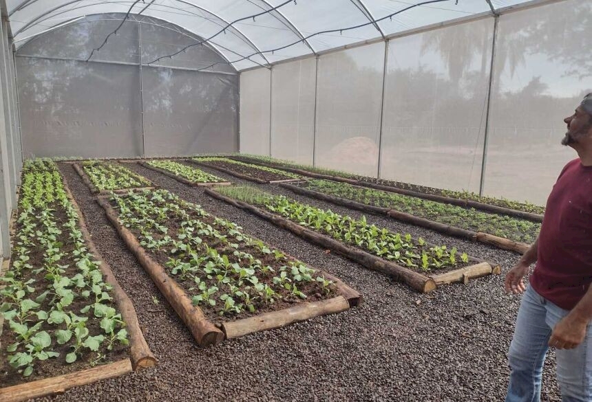 Nova estufa no Sítio Ecológico já produz hortaliças para consumo das escolas em Jateí