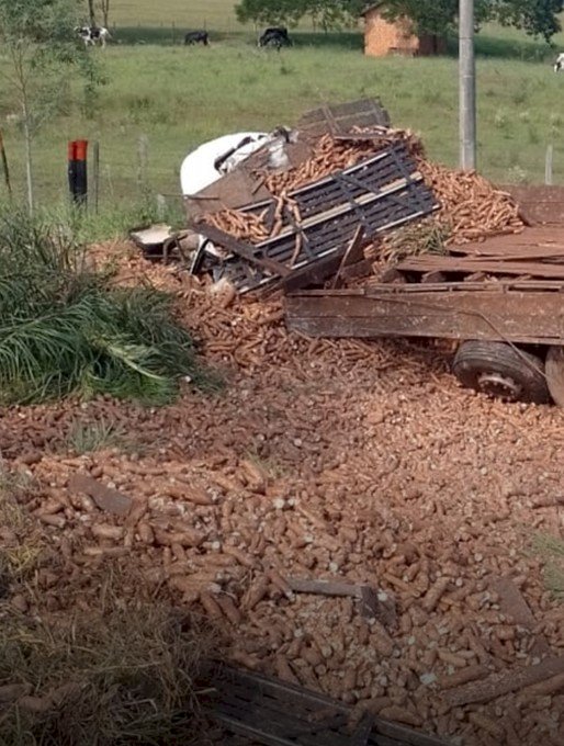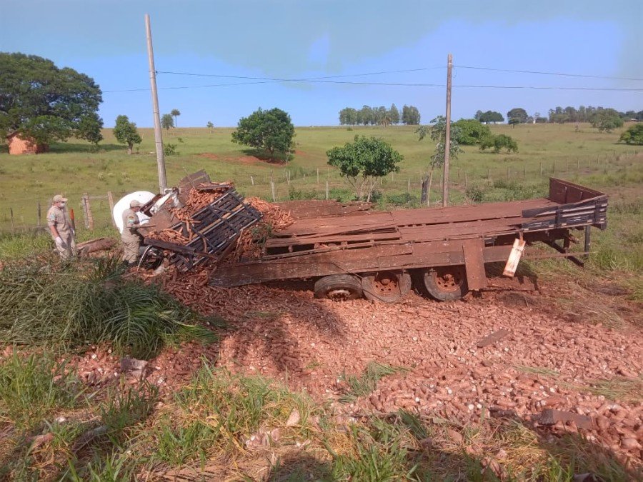 A carga de mandioca seria entregue numa empresa em Glória de Dourados a poucos do acidente