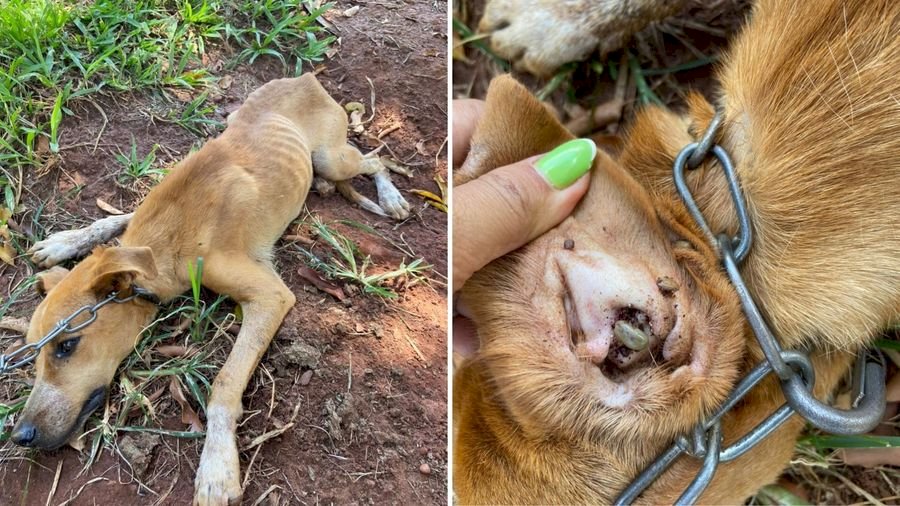 A PMA foi ao CCZ verificar a situação do animal e concluiu que o cachorro, sem raça definida, estava extremamente debilitado, doente, desnutrido e infestado de carrapatos e pulgas.