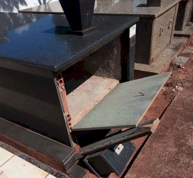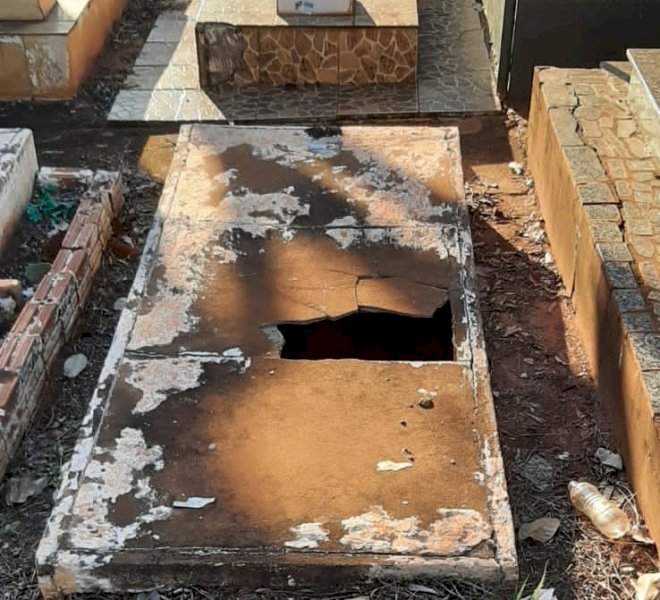 Ao menos 17 túmulos foram violados nos últimos dias no Cemitério Santa Bárbara de Nova Andradina, é o que registrou um morador ao visitar o túmulo de seu sogro.