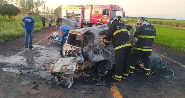Motorista, ainda não identificado, morreu carbonizado na madrugada desta sexta-feira (9), após colidir contra uma carreta e o carro que conduzia pegar fogo, na MS-134, em Nova Andradina, a 297 quilômetros de Campo Grande.