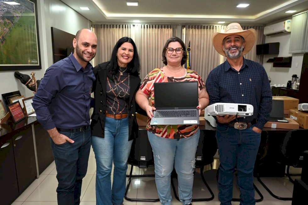 Com recursos da emenda parlamentar foram adquiridos notebooks, projetor e impressoras que foram entregues para escolas da rede municipal de ensino de Ivinhema.