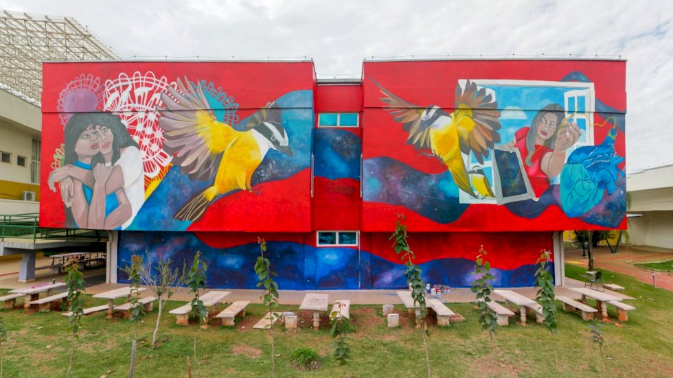 Cores vibrantes e realidade aumentada: artista plástica inaugura mural de 166 m² em Ponta Porã