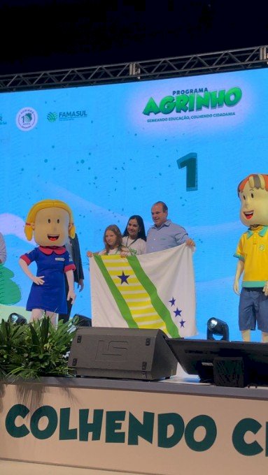 Os parabéns também para a estudante Rebeca, do 7°ano A Matutino da Escola Estadual Padre José Daniel, com orientação da professora Maria Eduarda, 1° Lugar na Paródia do Programa Agrinho: Semeando Educação, colhendo cidadania, por sua incrível conquista ao se destacar na classificação da paródia! Sua criatividade, dedicação e talento encantou a todos. Você mostrou que, além de ser uma estudante comprometida, também é uma artista cheia de potencial e originalidade. Essa conquista é fruto do seu esforço e inspiração, e temos certeza de que muitas outras virão no seu caminho. Continue sendo esse exemplo de determinação e alegria que motiva todos ao seu redor. Estamos muito orgulhosos de você!"