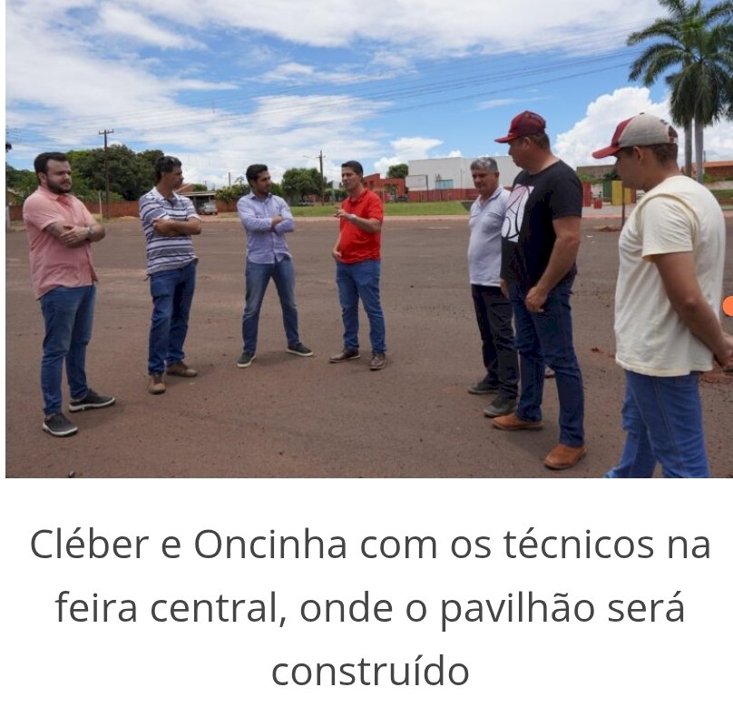 No começo desta semana, o prefeito Cléber acompanhado do vice Eduardo Oncinha estiveram visitando o local onde o pavilhão será construído. A vistoria contou com a presença de representantes da construtora responsável, que explicaram a dinâmica da obra, o prazo de execução e outros detalhes de sua edificação.