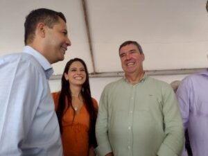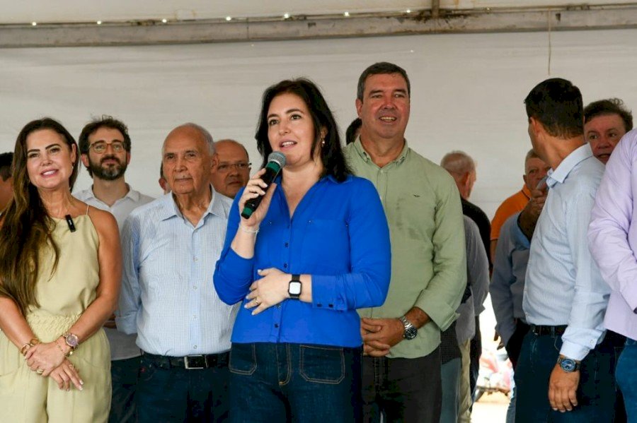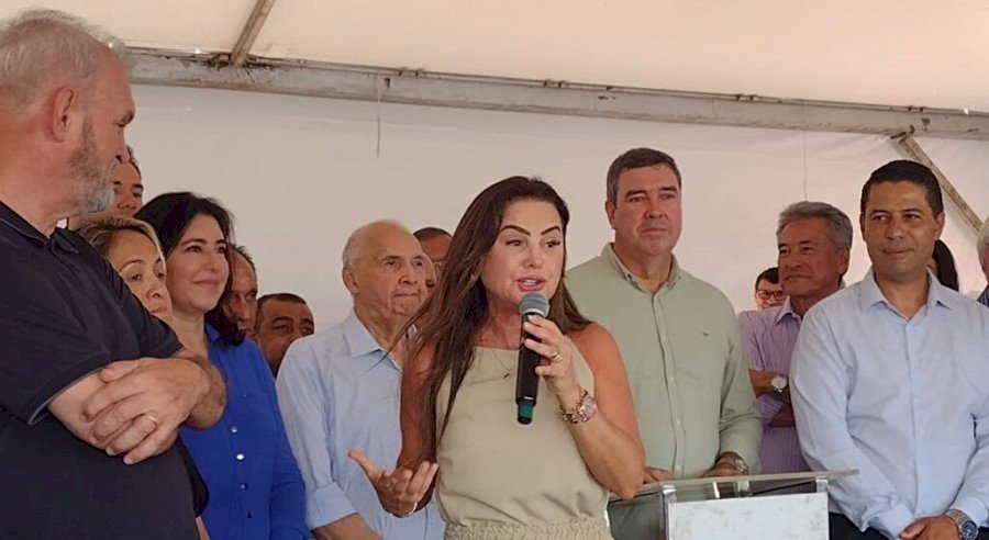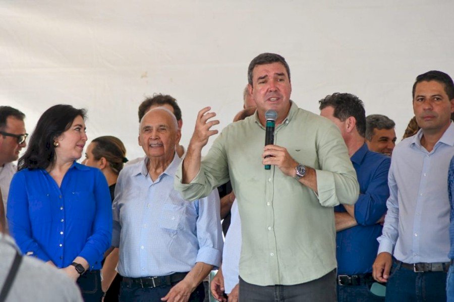 O prefeito Cleber Dias da Silva, de Vicentina recepcionou o governador Eduardo Riedel na manhã deste dia 14 de fevereiro, saudando ainda a presença da ministra de Estado, Simone Tebet, bem como deputados estaduais, o federal Geraldo Resende e a senadora Soraya Tronicke.