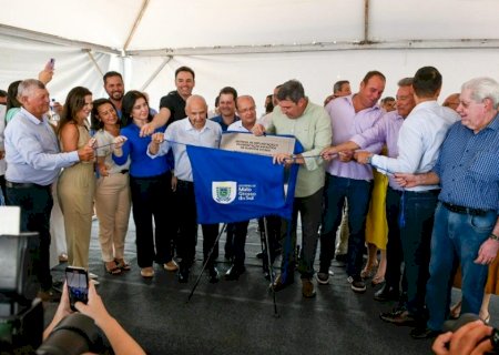 Além da obra do pavilhão coberto, Riedel e Cléber assinaram também ordem de serviço para a ampliação da rede de esgoto. O governador aproveitou para entregar oficialmente as obras de reforma geral da Escola Padre José Daniel, de pavimentação asfáltica, a reforma do escritório da Sanesul e serviços de melhorias nas estradas rurais.
