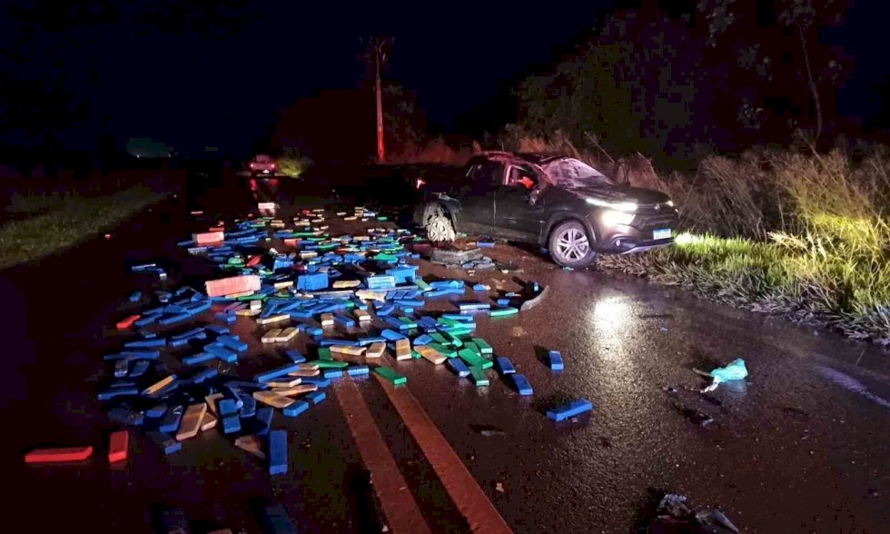 Para evitar um acidente maior, a polícia efetuou disparos nos pneus do veículo. Ao passar por uma lombada, o condutor perdeu o controle e capotou, espalhando a carga de maconha pela pista.