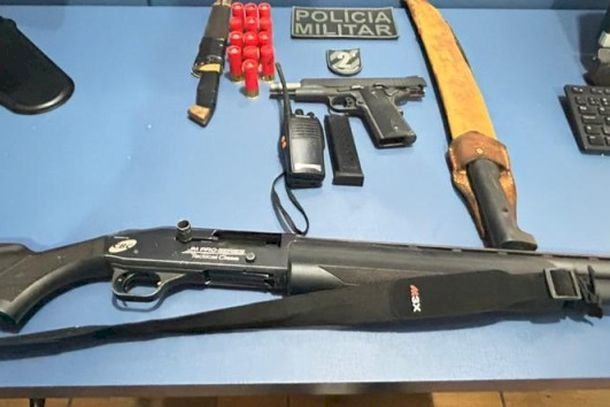 Questionados, os dois afirmaram possuir permissão para caçar em outro lote, porém não naquele em que foram encontrados. No local da abordagem, a Polícia Militar apreendeu uma espingarda calibre 12 municiada com sete cartuchos intactos, além de seis munições intactas encontradas no bolso da blusa de um dos envolvidos. Também foi apreendido um facão com aproximadamente 40 centímetros de lâmina.