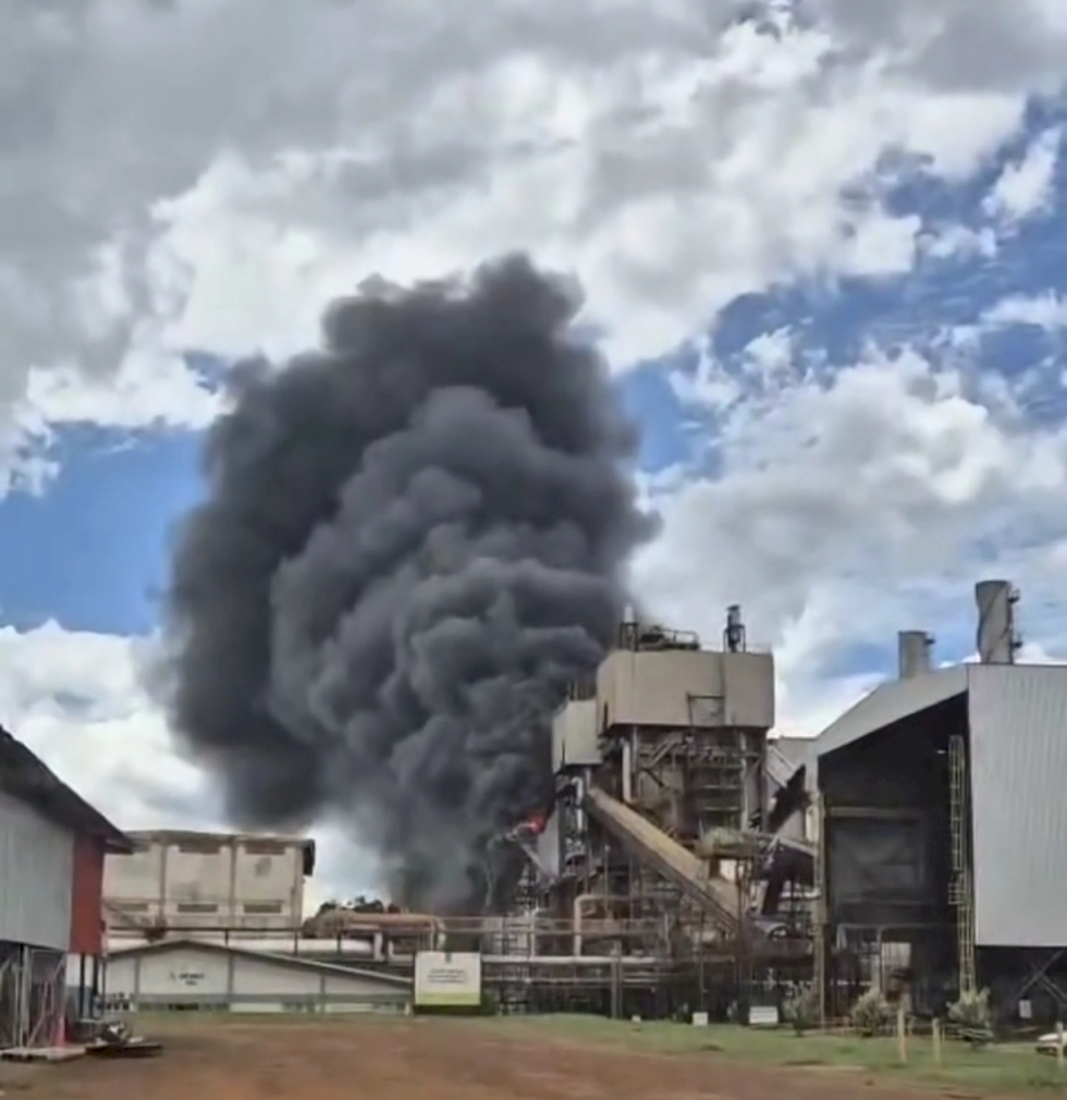 Incêndio, na tarde desta quinta-feira (12), atinge esteiras ao lado de uma caldeira na usina de Nova Alvorada do Sul.