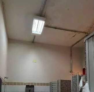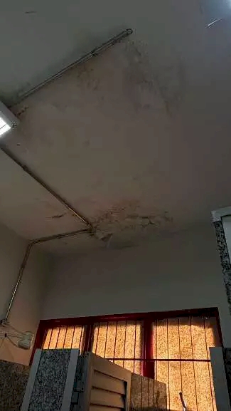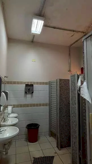 A situação é ainda mais crítica nos sanitários do bloco, onde goteiras atingem diretamente as pessoas durante o uso, criando condições insalubres e incompatíveis com higiene e segurança adequadas.