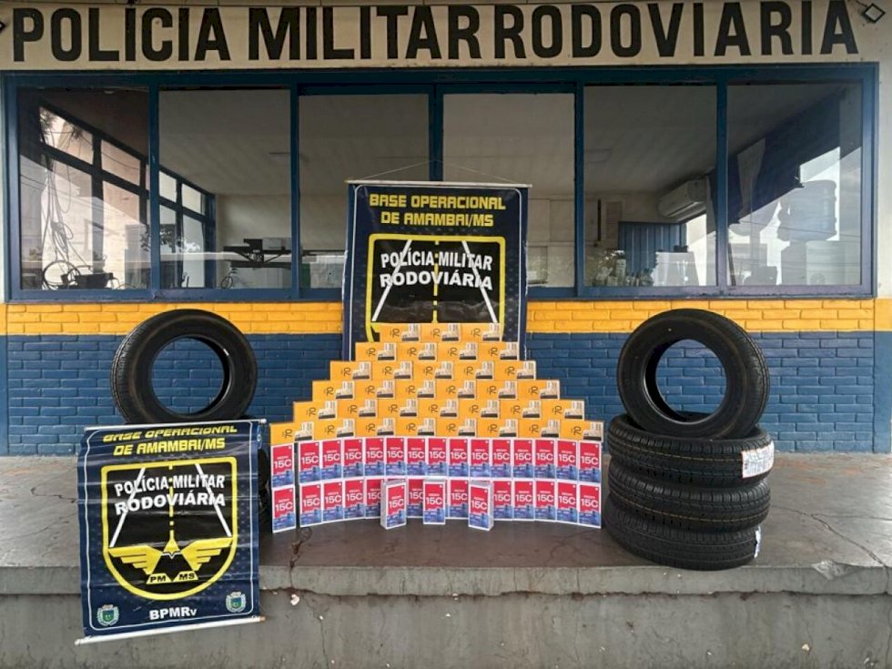 Em outra ocorrência, na rodovia MS-295, km 03, trecho entre Tacuru e Iguatemi, policiais abordaram um veículo e localizaram 66 aparelhos celulares e 08 pneus, transportados sem documentação fiscal.