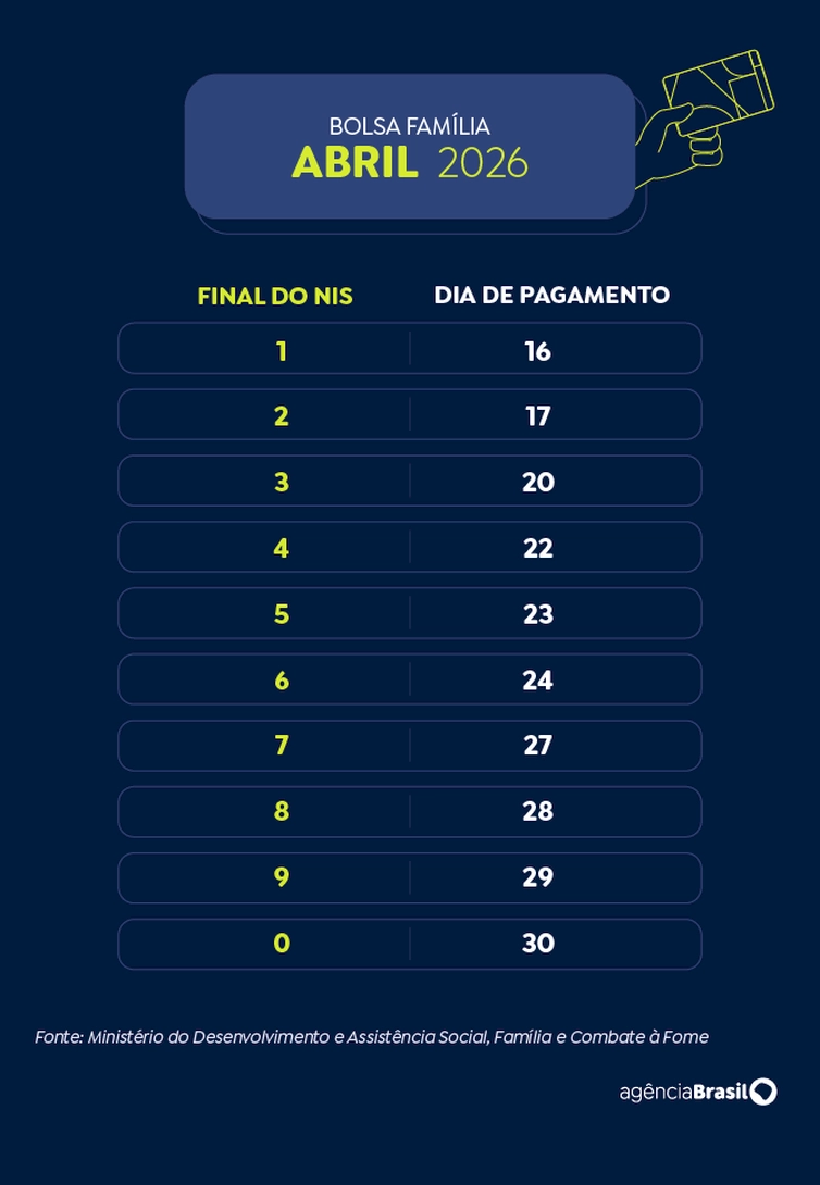 A Caixa Econômica Federal paga nesta terça-feira, dia 28 de abril, a parcela de abril do Bolsa Família aos beneficiários com Número de Inscrição Social (NIS) de final 8.