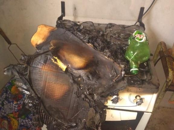 Os policiais entraram na casa e viram sacolas plásticas e papelão em chamas sobre o fogão. As chamas foram contidas pelos próprios militares e o botijão de gás foi retirado do local.