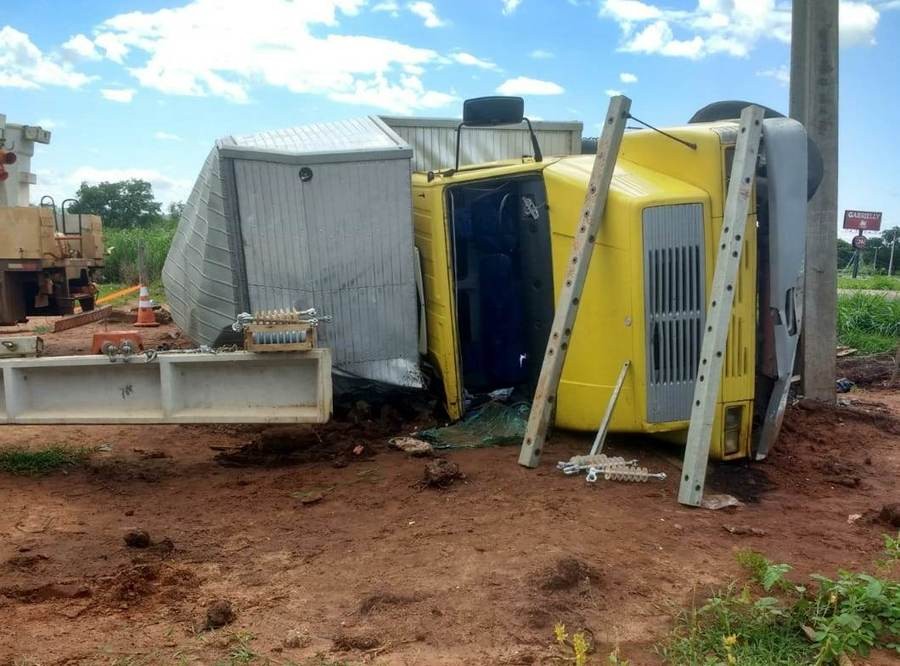 Caminhão sai da pista e atinge rede elétrica em Nova Casa Verde